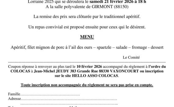 Youpi, on se retrouve bientôt !! Rendez-vous le 21 février à Girmont pour notre assemblée générale suivie de […]